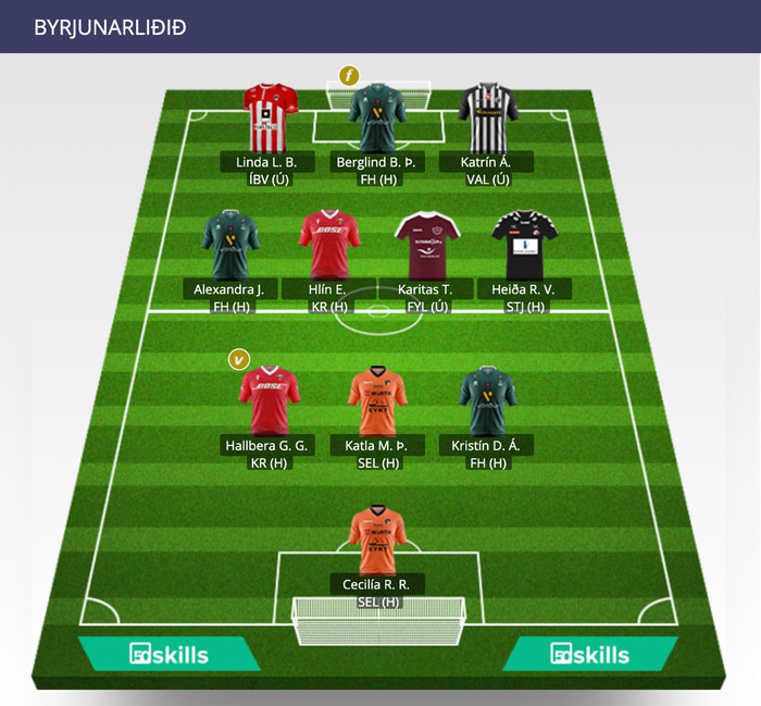 Ingibjörg Sigurðardóttir, landsliðskona og leikmaður Vålerenga, hefur valið draumaliðið sitt í Draumaliðsdeild 50 skills. Pepsi Max-deild kvenna hefst eftir átta daga svo það styttist óðfluga í upphafssparkið.