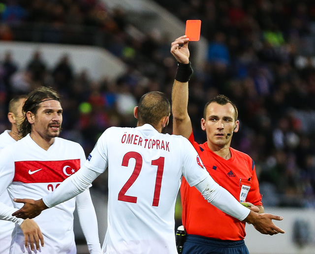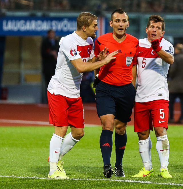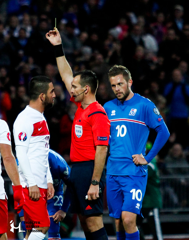 Jón Daði Böðvarsson, Gylfi Þór Sigurðsson og Jón Daði Böðvarsson skoruðu í leiknum. Bebek lyfti upp rauða spjaldinu á 59. mínútu þegar Ömer Toprak, leikmaður Tyrklands, fékk sitt annað gula spjald og þar með rautt.