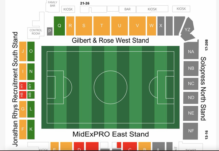 Nýjasta nafnið hefur þó verið eitthvað vanhugsað vegna þess að vesturhluti leikvangarins heitir núna Gilbert & Rose West Stand vegna mikilvægs styrks frá fasteignasölu Gilbert & Rose.