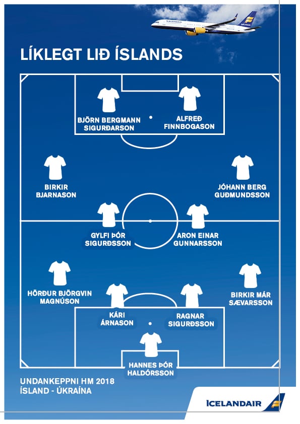 Fótbolti.net spáir því að íslenska landsliðið fari aftur í hefðbundið 4-4-2 leikkerfi gegn Úkraínu á morgun eftir að hafa byrjað í 4-5-1 í tapinu gegn Finnlandi á laugardag og í sigrinum á Króatíu í júní.