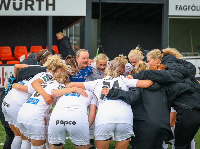 „Þetta var svolítið kaflaskipti. Við vorum á mörgum köflum frábærar í fyrri hálfleiknum. Skoruðum frábær mörk, héldum boltanum vel og fengum tækifæri en seinni hálfleikurinn var kaos í báðar áttir. Þær reyndu eins og þær gátu og þá stressuðumst við og þetta varð pínu kaos."