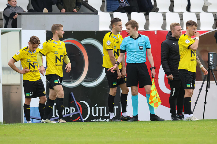 Jón Þór Hauksson, þjálfari ÍA, kom öllum á óvart tveimur mínútum síðar með að framkvæma fjórfalda skiptingu. Eitthvað sem hefur líklega aldrei sést áður í fyrri hálfleik í efstu deild.
