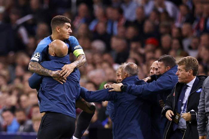 Mohammed Kudus kom Ajax yfir á 9. mínútu en það fór allt niður á við eftir það. Giacomo Raspadori jafnaði metin níu mínútum síðar og þá kom Giovanni Di Lorenzo liðinu yfir áður en Piotr Zielinski bætti við þriðja markinu undir lok fyrri hálfleiks.