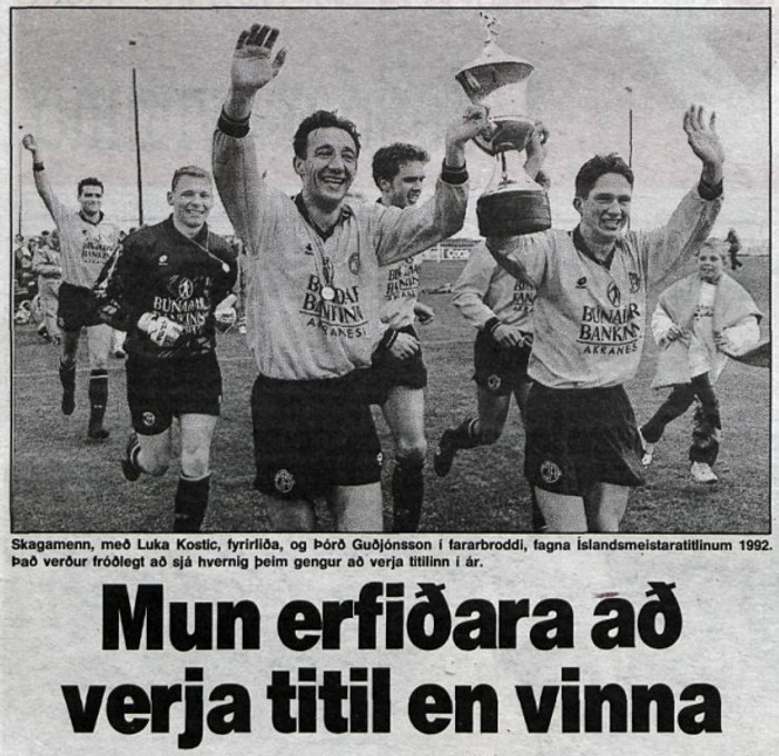 Luka Kostic var svo sannarlega í hópi hinna reynslumiklu leikmanna. Þessi spá rættist þó ekki heldur gekk liðinu enn betur. Svo fór nefnilega að Skagamenn urðu Íslandsmeistarar, en með því braut liðið blað í íslenskri knattspyrnusögu, varð fyrsta félagið til að vinna sigur í fyrstu deild eftir að hafa árinu áður unnið aðra deild.
