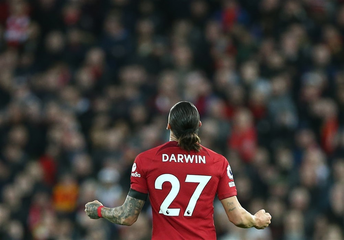 Boltinn barst á endanum til Harvey Elliott í teignum sem kom með fasta fyrirgjöf á hausinn á Nunez sem stangaði boltann í netið.