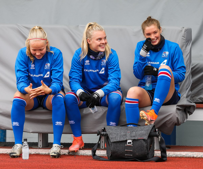 „Það var gott að tala íslensku á vellinum, eitthvað sem enginn skildi. Mér fannst það pínu erfitt, að tala þrjú tungumál á vellinum en hún átti auðveldara með það. Stundum, þegar hún var beint fyrir framan mig á vellinum þá var þægilegt að vera með smá leyni; að geta sagt hægri, vinstri og svoleiðis.”