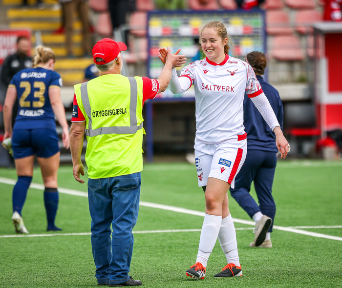 „Þróttararnir voru sprækir og gáfu okkur alvöru leik. Ég þurfti að hafa fyrir mínu. Við nýttum okkar fær og uppskárum eftir því. Það er alltaf gaman að halda hreinu og ég var sátt með mitt."