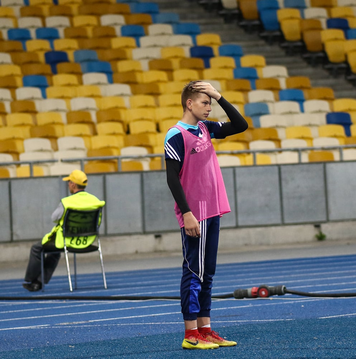 Úkraínumenn voru í áhorfendabanni og aðeins starfsmenn og fjölmiðlamenn sem máttu vera viðstaddir leikinn, og það á ristastórum leikvangi sem innheldur yfir 70 þúsund sæti. Fjölmiðlamenn voru eins og krækiber í helvíti.