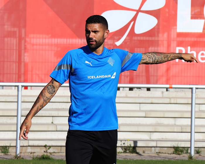 Viðtalið má sjá í heild í sjónvarpinu hér að ofan en þar tjáir hann sig nánar um landsliðsverkefnið og Eupen, og það hvernig er að fá Alfreð Finnbogason til belgíska félagsins.