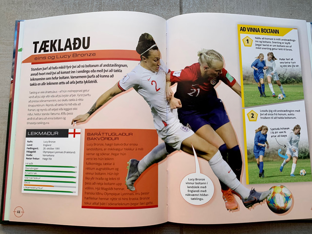 Hún er stútfull af fróðleik um tækni, takta og stjörnurnar. Enda er bókin er hugsuð fyrir alla krakka sem æfa fótbolta og vilja bæta sig og þróa sína hæfileika.