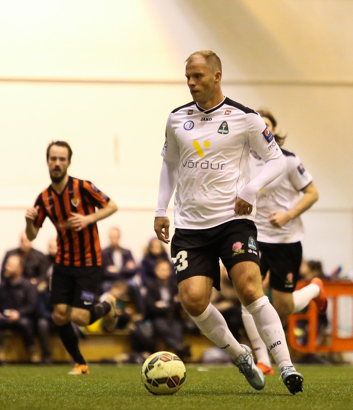 „Já ég átti að setja hann, en ég var meira að spá í að þetta átti að vera góð æfing. Svo er ég alltaf með bakvið eyrað að lenda ekki í samstuði og meiða sjálfan sig né annan. Þetta verða aldrei 100% leikir," sagði Eiður en hann Víkingar létu hann finna fyrir sér, þar á meðal Viktor Bjarki Arnarsson einu sinni.