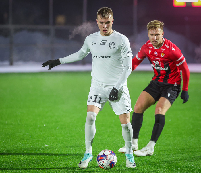 Benoný Breki Andrésson kom KR-ingum yfir á 7. mínútu en fleiri mörk voru ekki skoruð í fyrri hálfleik.
