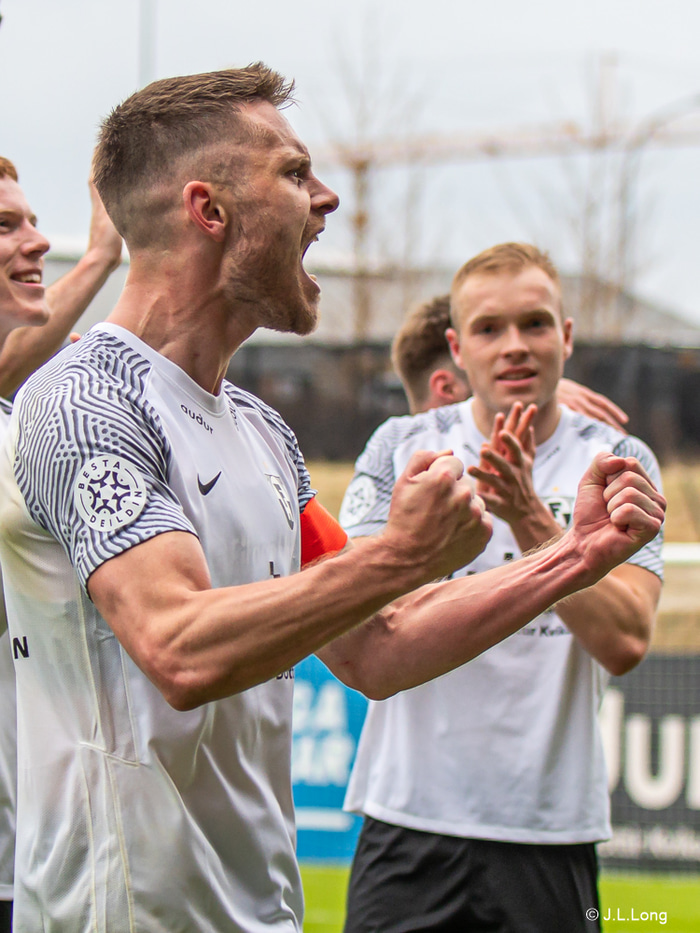 FH-ingar og þeir tóku forystuna eftir 20 mínútna leik er Ólafur Guðmundsson kom boltanum í netið eftir aukaspyrnu inn á teiginn sem Björn Daníel Sverrisson tók.