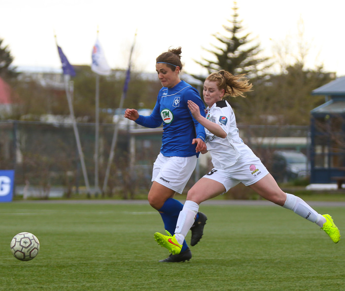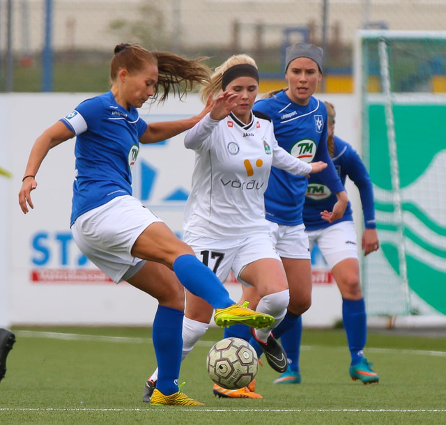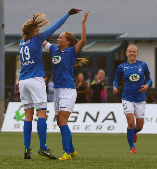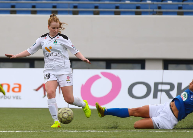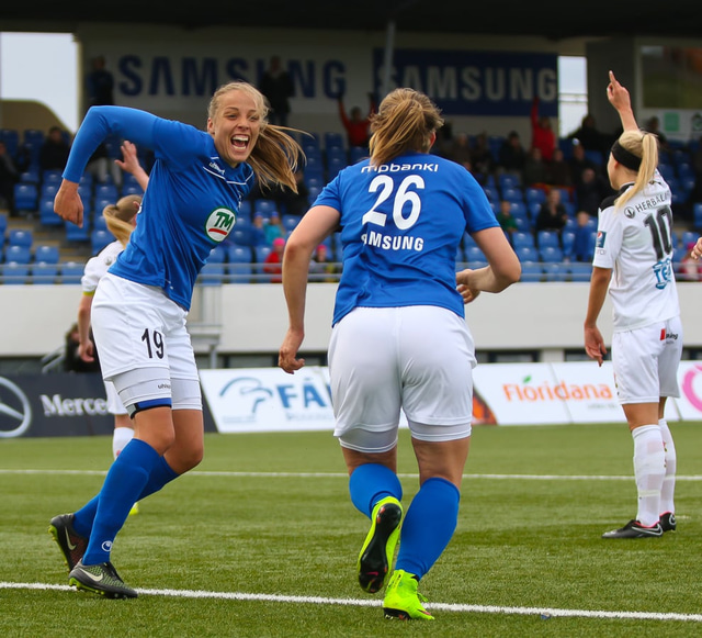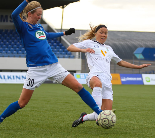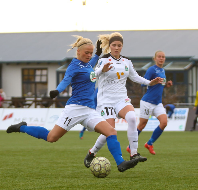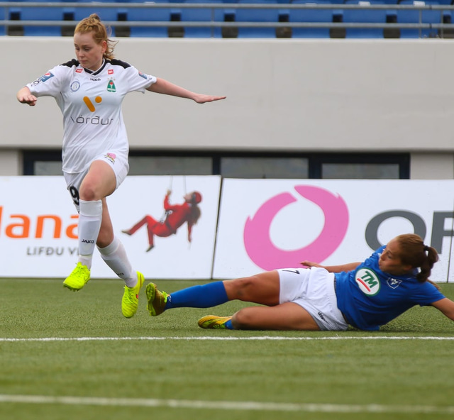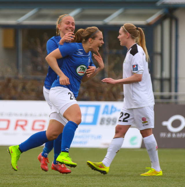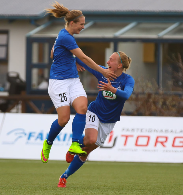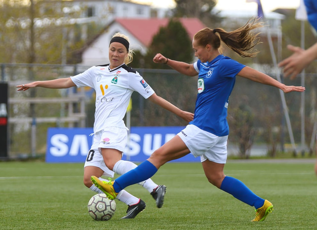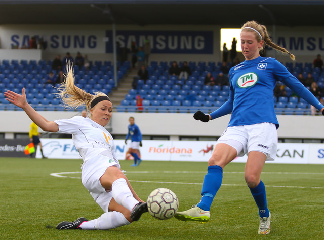 Stjarnan vann 2 - 1 sigur á Breiðabliki í 16 liða úrslitum Borgunarbikars kvenna í gærkvöldi.