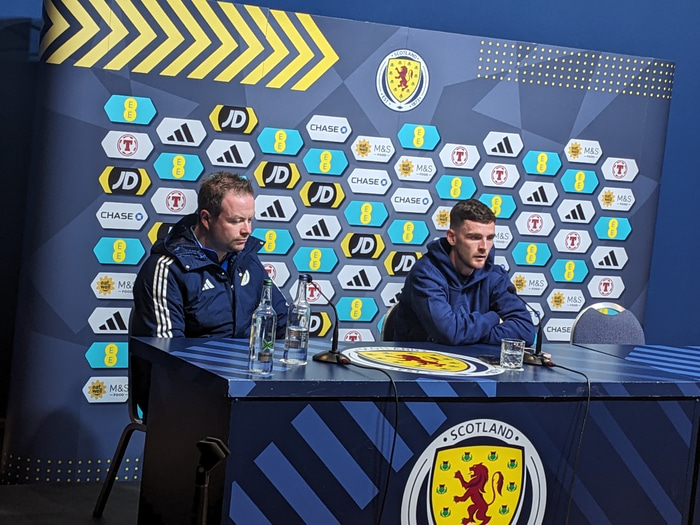 Andy Robertson er fyrirliði skoska landsliðsins og hann ræddi við fjölmiðlamenn á fréttamannafundi á Hampden Park, þar sem Skotland og Ísland mætast í vináttulandsleik í kvöld.