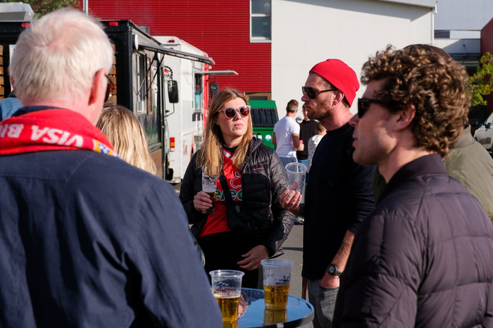 Það ríkti sannkölluð sumargleði á Origo vellinum þegar Valur mætti ÍA í rjómablíðu. Að vanda sáu Fálkarnir um grillið, boðið var upp á leiki fyrir krakkana og hituðu strákarnir í ClubDub upp mannskapinn fyrir leik.