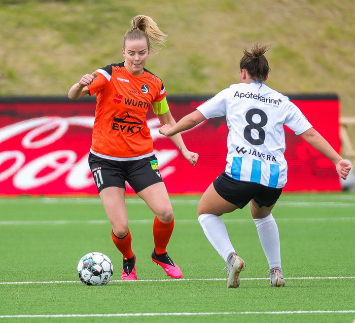 „Mér finnst mjög skemmtilegt á miðjunni því þá fæ ég að vera með sóknarlega," sagði hún. „Ég er mjög fín báðum megin en finnst gaman á miðjunni. Við vorum að prófa nýtt leikkerfi sem mér fannst koma vel út í dag og vona að við höldum því áfram."