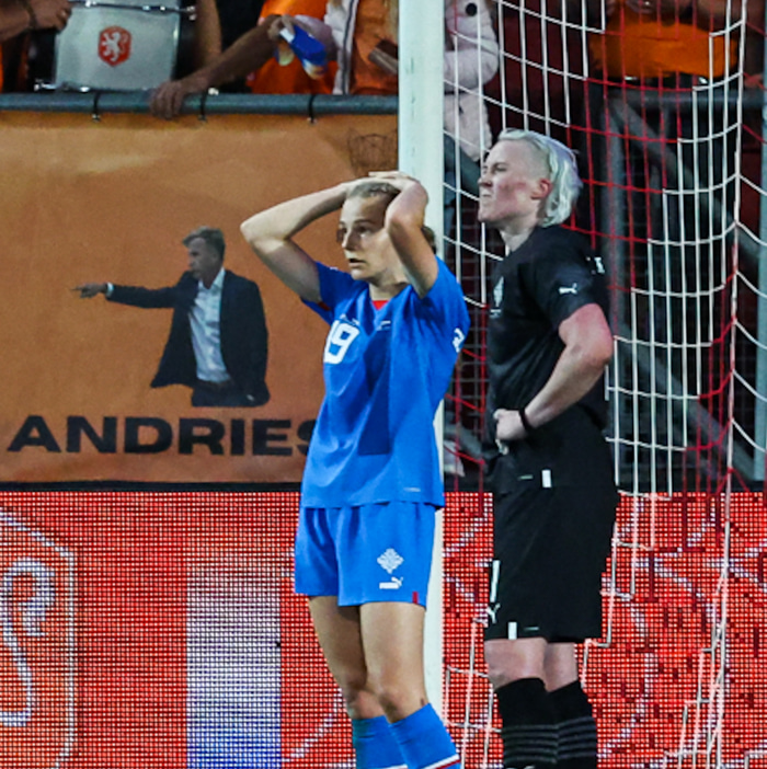 Í þeim síðari varðist íslenska liðið betur og skapaði Holland sér ekki jafn mörg færi og í þeim fyrir. Örvænting greip um sig og fyrirgjafirnar orðnar hans margar og það langt frá teig en ein þeirra heppnaðist og það á þriðju mínútu í uppbótartíma. Súrt og Áslaug Munda viðurkennir það.
