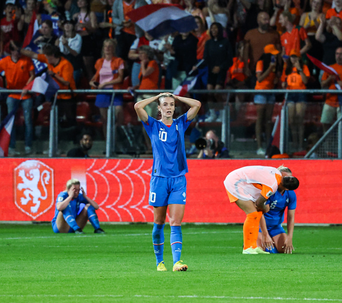 Í þeim síðari tókst íslenska liðinu að loka betur á Holland og reyndu þær örvæntingafullar fyrirgjafir trekk í trekk. Það var svo í seint í uppbótartíma sem ein þeirra gekk upp og Holland komið á HM.