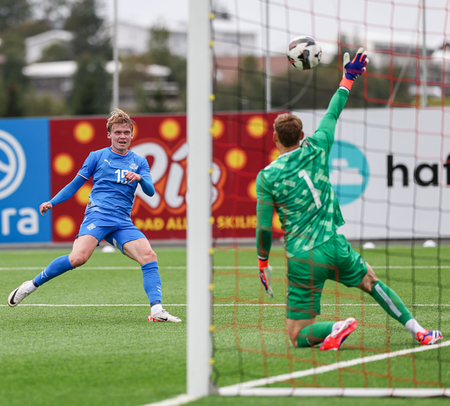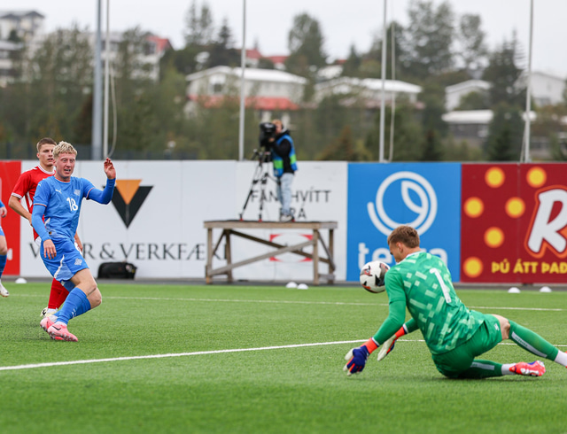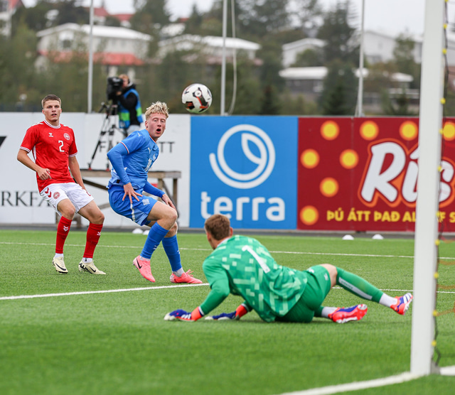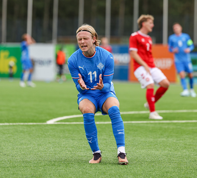 Snemma í seinni hálfleik jafnaði Mathias Kvistgaarden fyrir Danmörku á nýjan leik. Spennan var mikil en á 73. mínútu fékk Ísland vítaspyrnu þegar Hilmir Rafn Mikaelsson gerði virkilega vel. Vítaspyrna var dæmd og á sama tíma fékk Sebastian Otoa að líta rauða spjaldið.