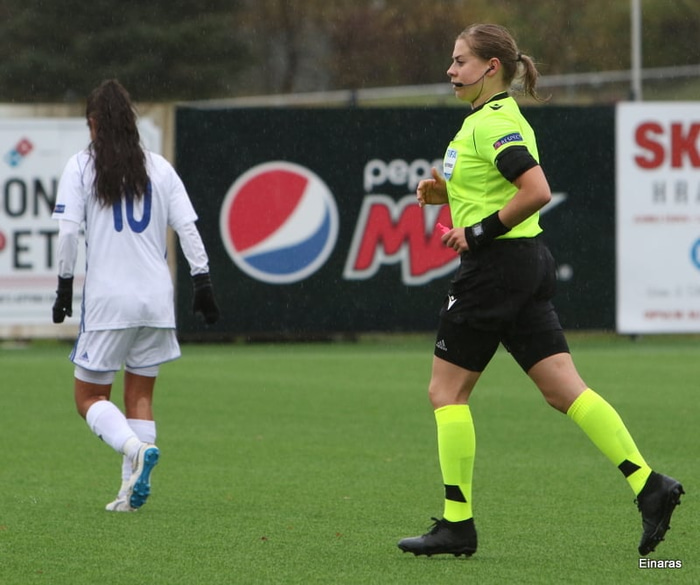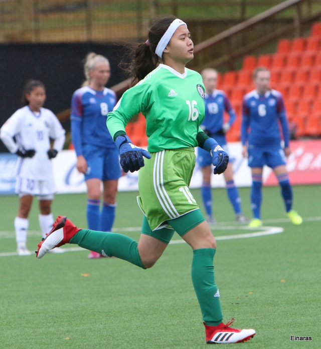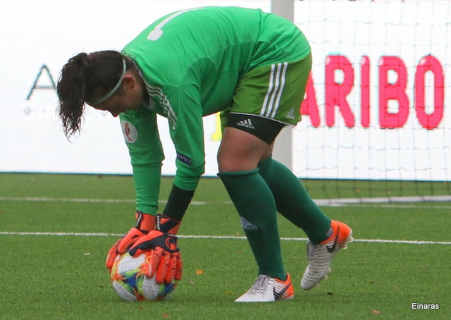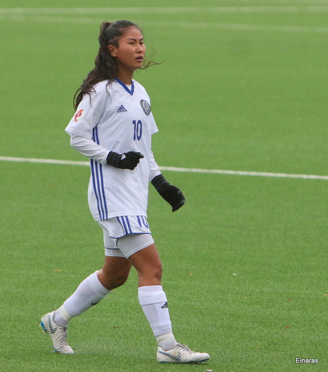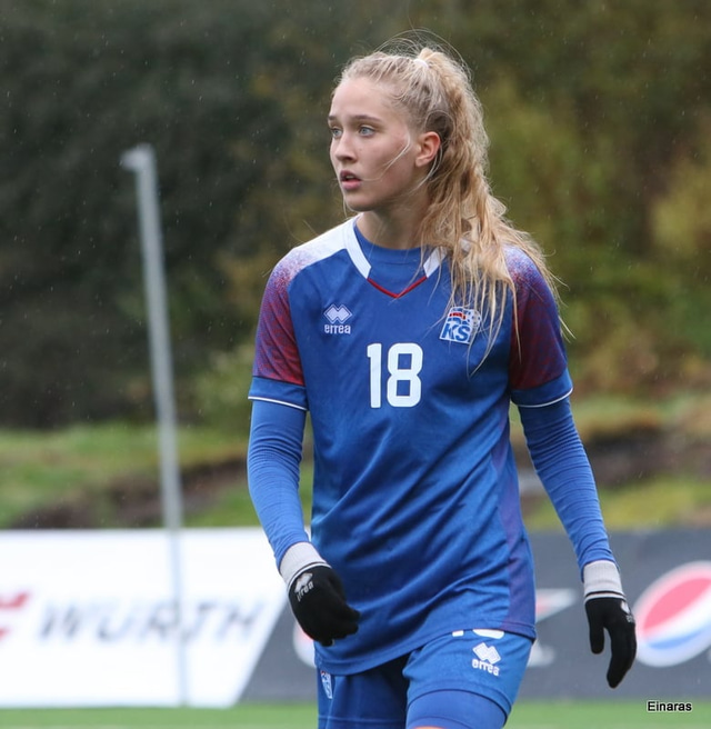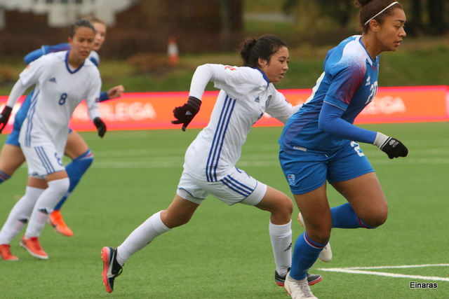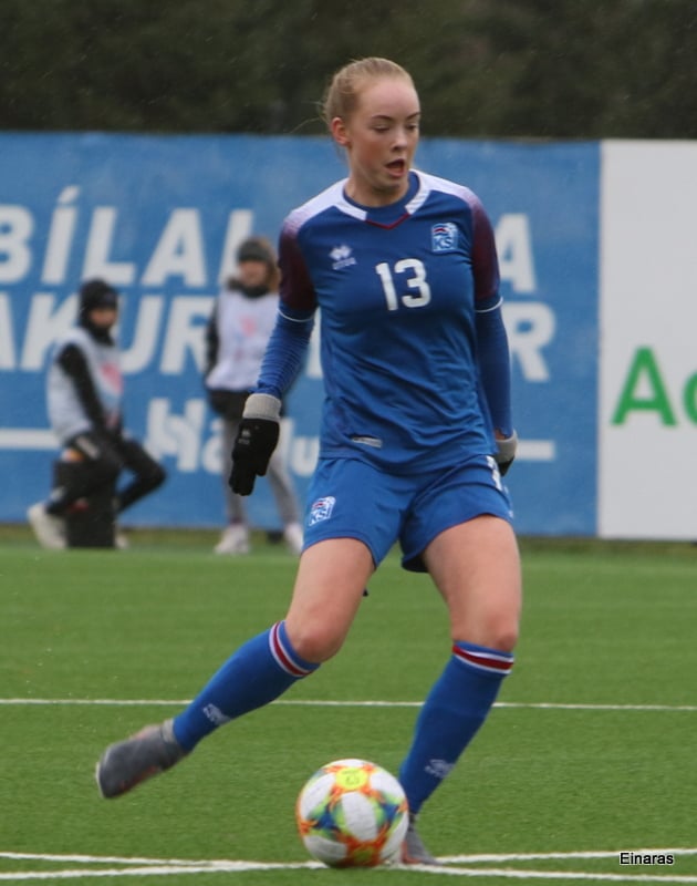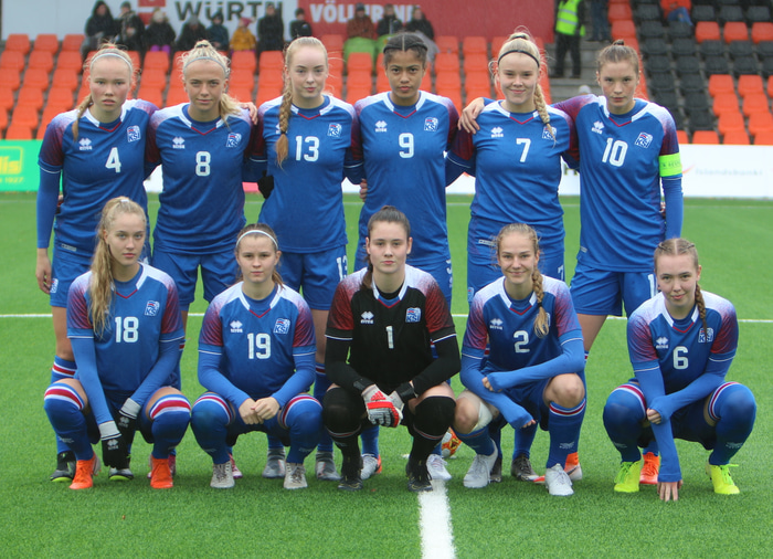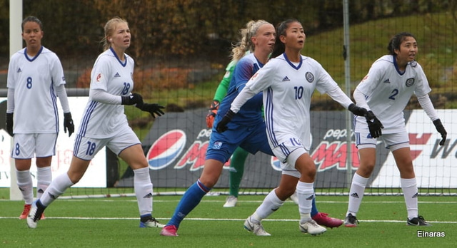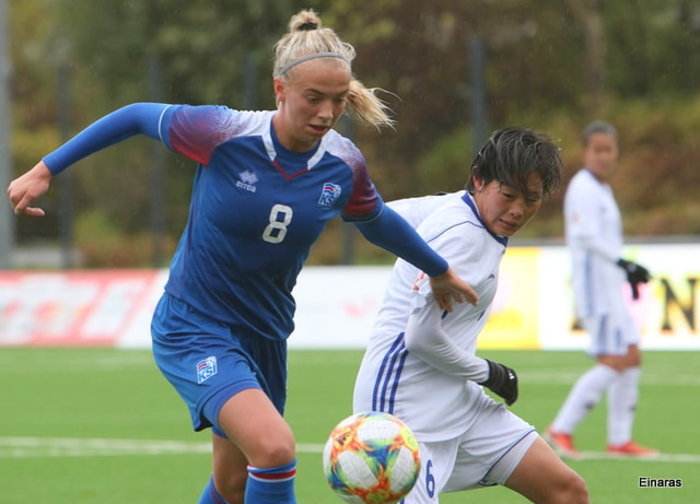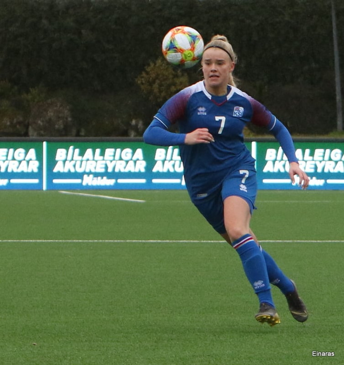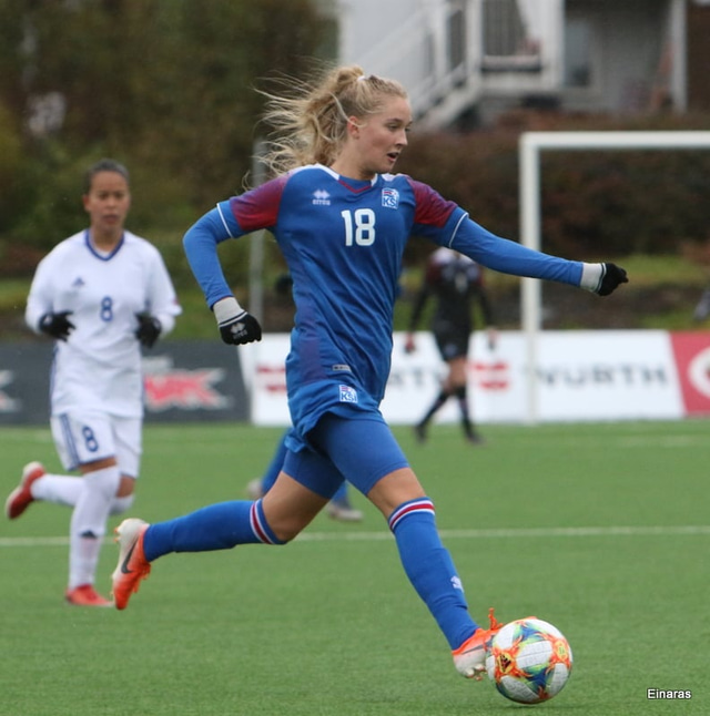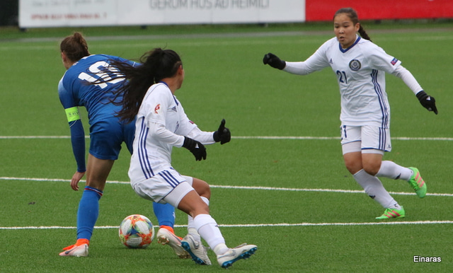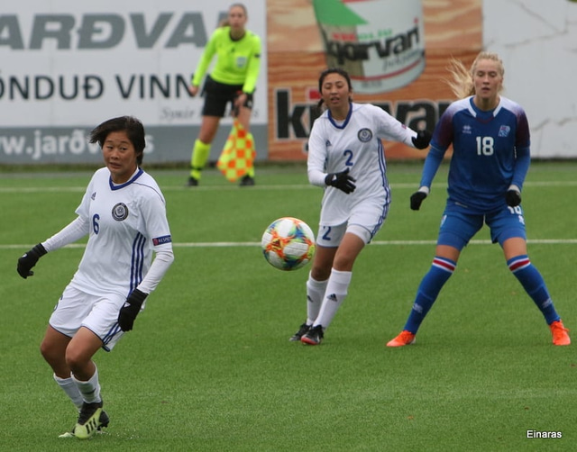 Íslenska kvenna landsliðið skipað leikmönnum 19 ára og yngri mætti Kasakstan í Árbænum í gær í undankeppni EM. Íslensku stelpurnar unnu leikinn örugglega, 7-0.