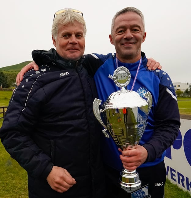 „Algjörlega frábær á þessu tímabili og vel að þessu kominn," segir Sverrir Mar en Geir, sem er fæddur 2004, lék 20 leiki með KFA sem var í harðri baráttu um að komast upp um deild.