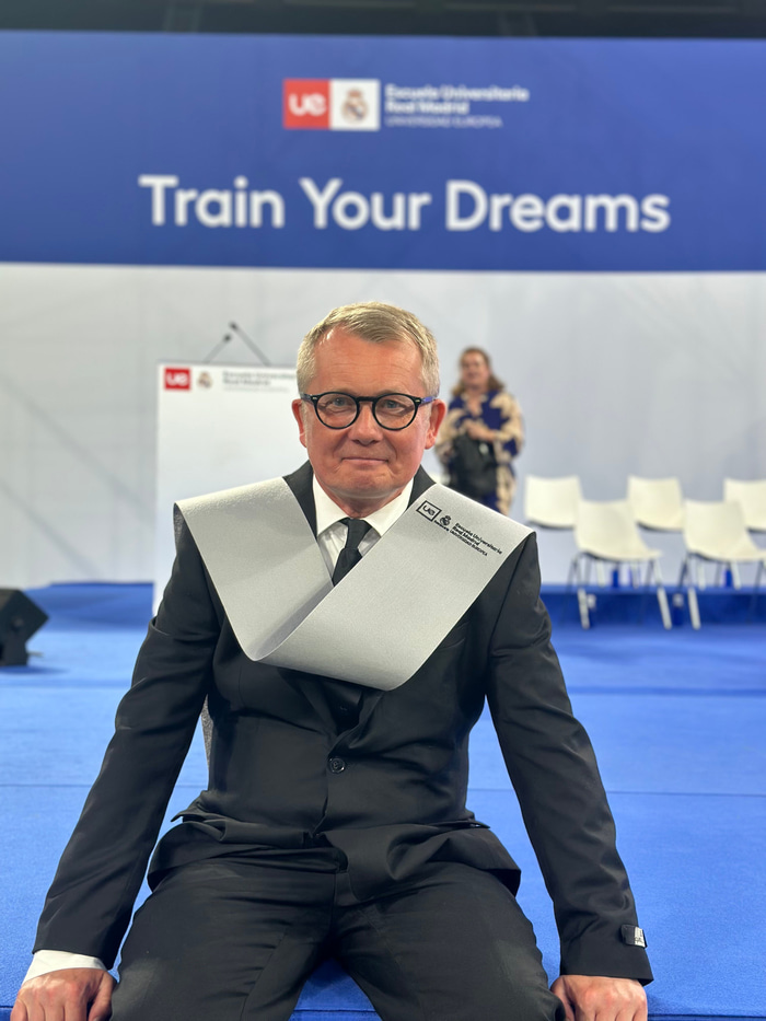 „Allt efnið var rafrænt, fyrirlestrar á hverjum einasta degi. Það voru um 1700 manns sem útskrifuðust bæði frá netinu og úr háskólanum sjálfum. Síðan þurfti ég að fara einu sinni út og svo aftur í útskriftina sem var á Santiago Bernabéu, þetta var ákveðið ævintýri.“
