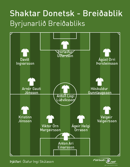 Lið Breiðabliks er statt í Kraká í Póllandi þar sem liðið mun mæta Úkraínska liðinu Shaktar Donetsk í 3.umferð Sambandsdeildar Evrópu en flautað verður til leiks klukkan 17:45. Ólafur Ingi Skúlason þjálfari Blika hefur nú opinberað byrjunarlið sitt sem má sjá hér að neðan.