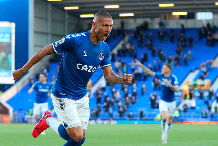Richarlison hélt að hann hafði komið Everton yfir undir lok fyrri hálfleiks en hann var rétt fyrir innan varnarlínu Arsenal og VAR dæmdi rangstöðu.