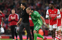 „Ég er svo ánægður með liðið.“ svaraði Arteta sem vildi ekkert ræða um mistök markvarðar síns.