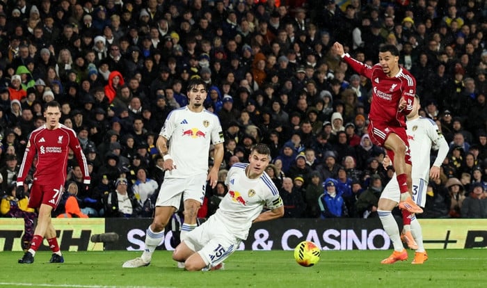 Leeds jafnaði metin aðeins tveimur mínútum síðar þegar Anton Stach kom sér í góða stöðu inn á teignum og skoraði. Liverpool gafst ekki upp því Dominik Szoboszlai kom liðinu aftur yfir eftir langa sendingu frá Ryan Gravenberch.
