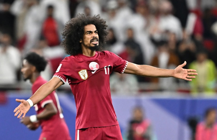 Almoez Ali reyndist hetja Katar þegar hann fékk boltann inn á teignum og setti boltann í netið við litla sem enga mótspyrnu.