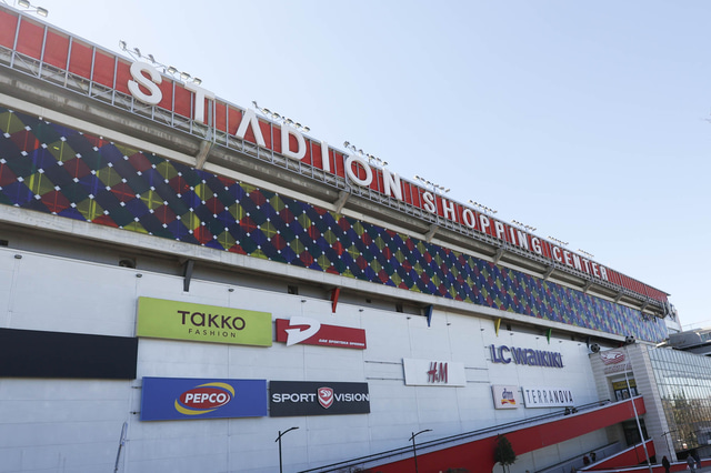 Miðað við staðsetningu verslanna undir vellinum er McDonald's staður beint fyrir neðan annað markið en fyrir neðan hitt markið er H&M verslun.