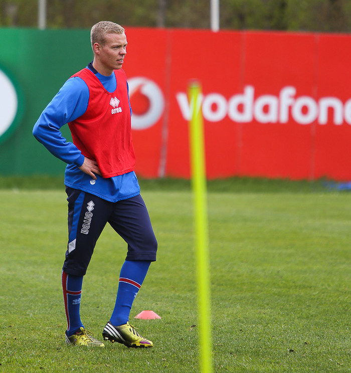 ,,Takk fyrir að minna mig á það. Það var alveg séns strax í byrjun að setja mark þarna, ég veit ekki hvort ég var tilbúinn eða ekki. Hann kom langt út og ég reyndi að setja hann í hornið en hann stóð vel. Ég hefði getað chippað líka, en ég tók ákvörðun að skjóta og hann varði það," sagði Kolbeinn.