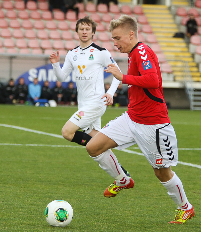 Hann skoraði tvö mörk í 3-0 sigri sinna manna gegn KR.
