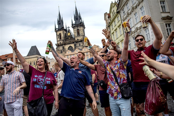 Talið er að yfir 20 þúsund stuðningsmenn West Ham hafi ferðast til Prag en meiri hluti þeirra er ekki með miða á leikinn í kvöld.