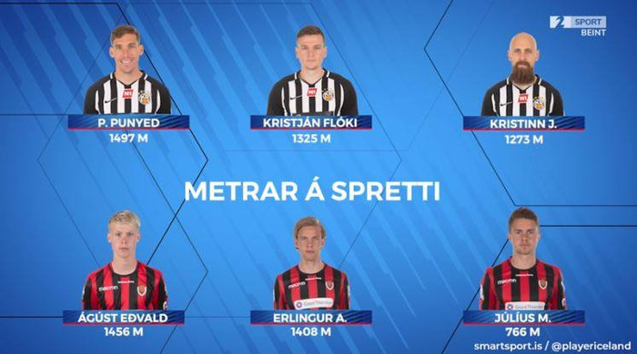 Ágúst Eðdvald hljóp 13,18 kílómetra í leiknum en þar af voru 1456 metrar á hárri ákefð. Ágúst tók 42 spretti í leiknum. Erlingur hljóp 12,67 kílómetra, þar af 1408 metrar á hárri ákefð. Erlingur tók 43 spretti í leiknum.