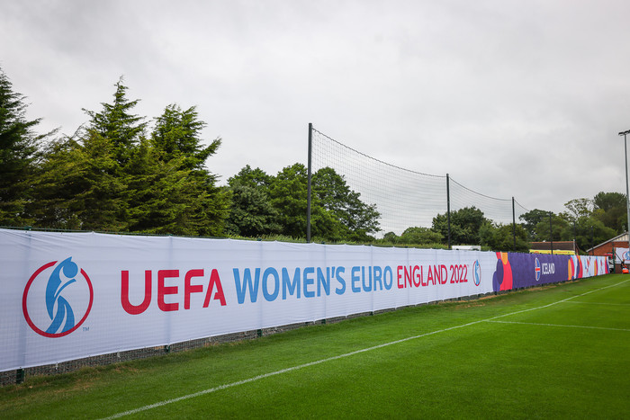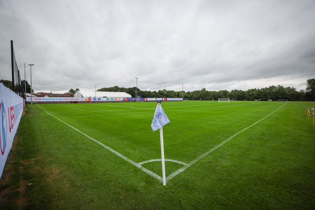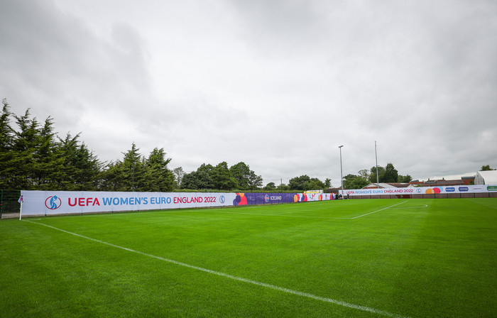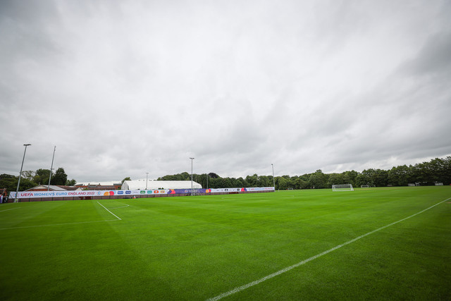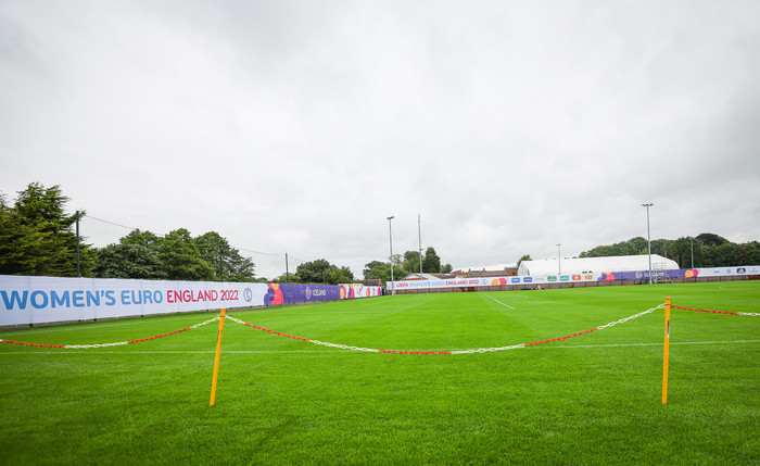 Í þessum skrifuðu orðum er íslenska kvennalandsliðið að æfa á æfingavellinum í Crewe, bækistöðvum sínum á meðan Evrópumótið er í gangi.