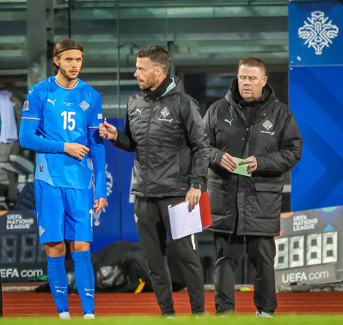 Fyrrum atvinnu- og landsliðsmaðurinn Sölvi Geir Ottesen kom inn í þjálfarateymið fyrir þetta verkefni. Hann er aðstoðarþjálfari Víkings og hafði verið aðstoðarþjálfari Davíðs Snorra Jónassonar í U21 landsliðinu. Sölvi er sérfræðingur í föstum leikatriðum og komu bæði mörk Íslands úr hornspyrnum.