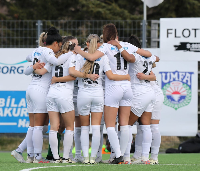 Meistaraflokkar kvenna í handbolta og fótbolta voru að ferðast saman í rútu í dag þar sem bæði lið áttu útileiki.