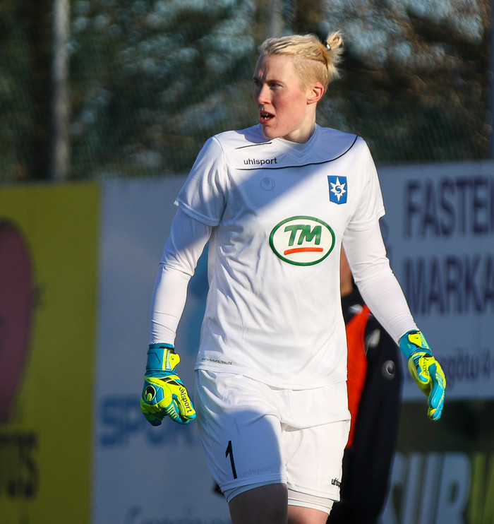 Sandra Sigurðardóttir, markmaður Stjörnunnar var svekkt eftir 3-1 tap liðsins gegn rússneska liðinu Zvedzda í 32-liða úrslitum Meistaradeildar Evrópu í kvöld.
