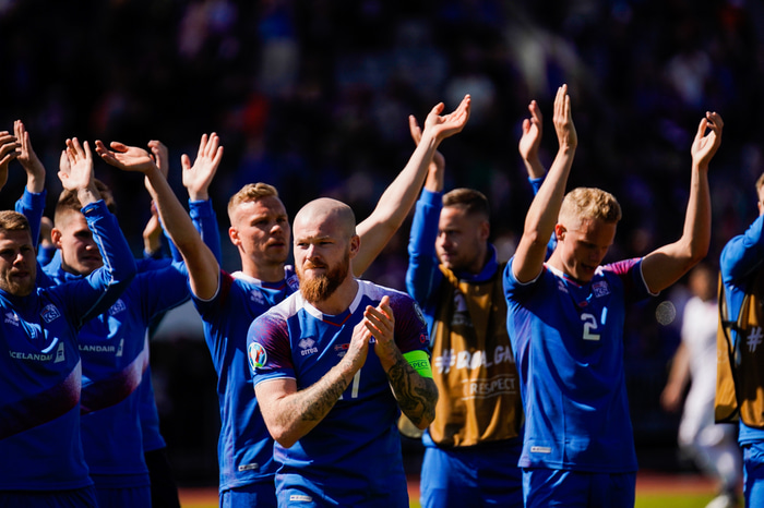 „Það er gífurlega mikilvægt fyrir okkur og við erum þakklátir fyrir það að fá Tólfuna. Þeir hafa verið okkar helstu stuðningsmenn og gefa allt í þetta eins og við höfum gert inni á vellinum. Þeir gefa allt í þetta upp í stúku og vonandi skilar það samspil sigri. Við erum staðráðnir í að ná í þennan sigur og lyfta þjóðinni aðeins upp," segir Aron.