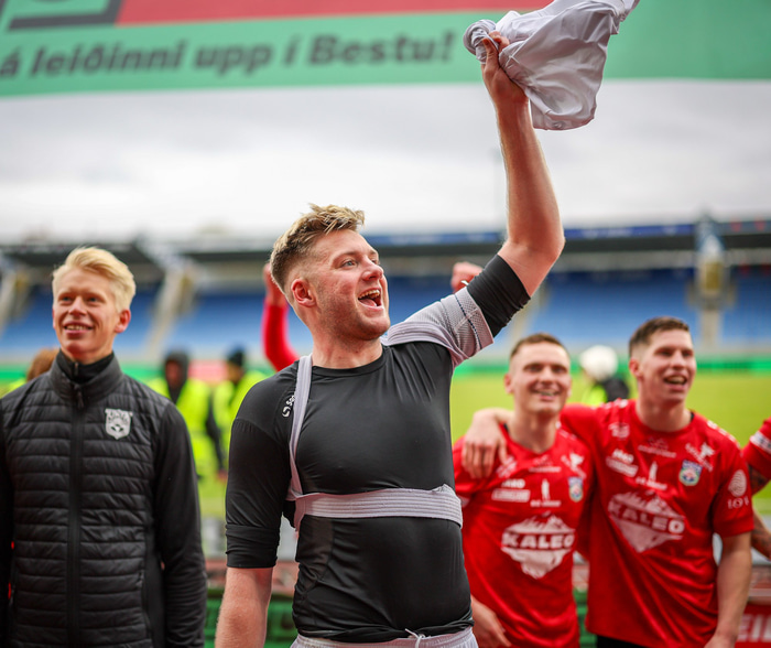 „Ég fór að hágráta," segir Jökull. „Ég er búinn að hugsa oft út í það hversu mikið ég fór að gráta. Maður þurfti aðeins að róa sig niður. Hvað getur maður gert? Sérstaklega líka eftir síðustu tvö árin hjá mér í fótbolta. Þetta hefur verið meira niður en upp og svo fær maður loksins svona þar sem allt gengur vel. Manni líður aftur vel. Þetta er ástæðan fyrir því að ég er í fótbolta, að líða vel og njóta. Loksins er maður að njóta og með öllu þessu magnaða fólki í Mosfellsbæ. Það er öðruvísi tilfinning sem maður getur bara varla útskýrt."