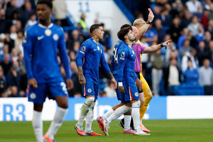 Chelsea hefur alls fengið sjö rauð spjöld í öllum keppnum. Marc Cucurella var sá síðasti en hann var rekinn af velli í gær í 2-1 tapi liðsins í nágrannaslag gegn Fulham.