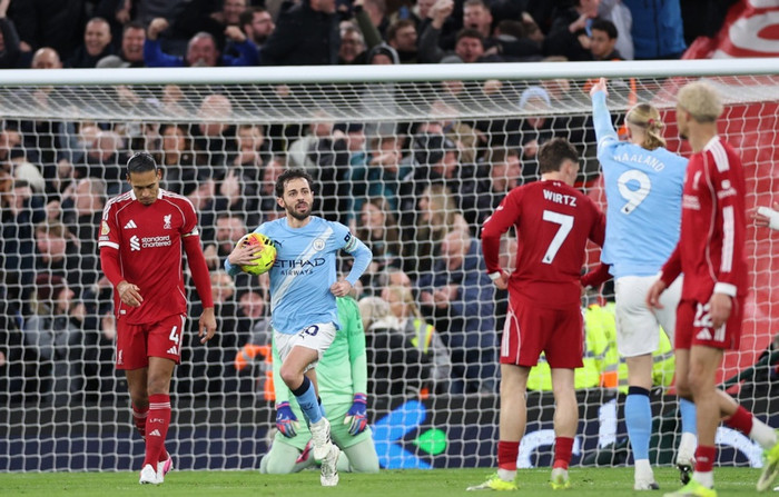 Á 84. mínútu tókst þeim að jafna leikinn. Rayan Cherki átti fyrirgjöf sem Haaland skallaði inn fyrir á Bernardo Silva sem tæklaði boltann í netið. Það var einhver umræða um rangstöðu, en Szoboszlai spilaði hann réttstæðan og staðan aftur jöfn.