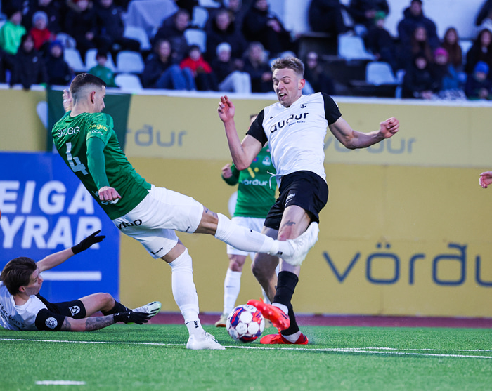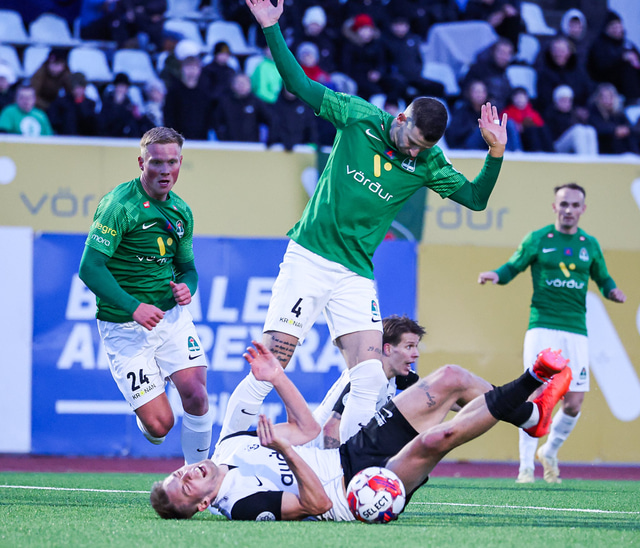 Ívar Orri Kristjánsson dómari dæmdi ekkert en Hafliði Breiðfjörð tók þessar góðu myndir af atvikinu.
