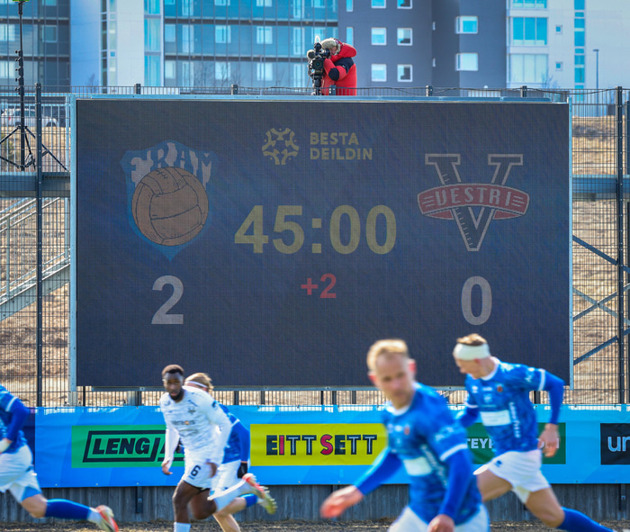 Í Árbænum gekk klukkan svo áfram allan uppbótartímann þegar Fylkir og KR mættust. Mikil dramatík var í lokin þar og því gaman fyrir áhorfendur að átta sig á hvað tímanum leið.