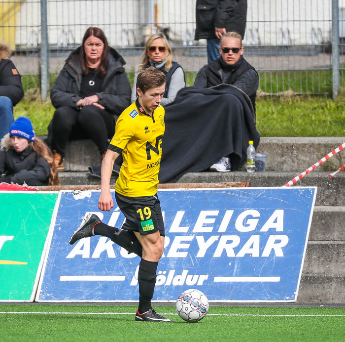 Bjarki Steinn byrjaði tímabilið á bekknum en hefur unnið sig inn í byrjunarliðið með góðri spilamennsku og hefur nú byrjað þrjá leiki í röð, Bjarki segist vera sáttur við sína spilamennsku.