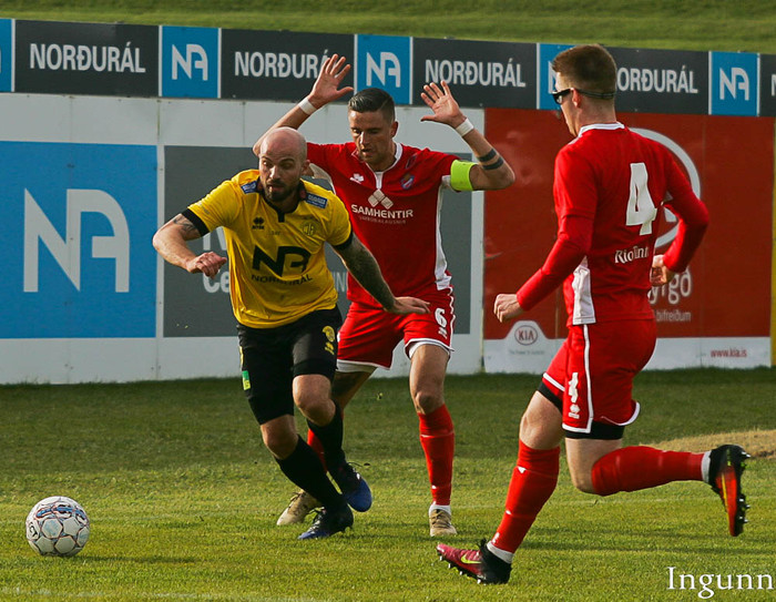 „Við byrjuðum ekki nógu vel fannst, mér fannst við ekki nógu áræðnir í fyrri hálfleik en eftir góða ræðu hjá þjálfaranum í hálfleik vorum við mun skárri í seinni hálfleik," sagði Garðar.