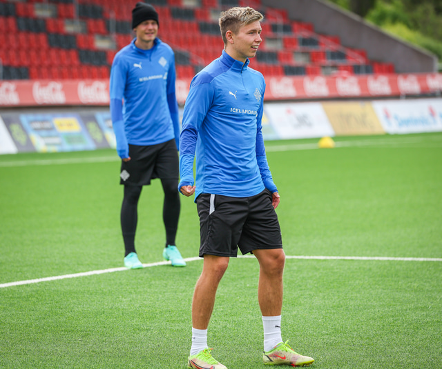 U21 landslið Íslands æfði á Víkingsvelli í gær en liðið mætir Hvíta Rússlandi í undankeppni EM í kvöld. Hér að neðan er myndaveisla af æfingunni.